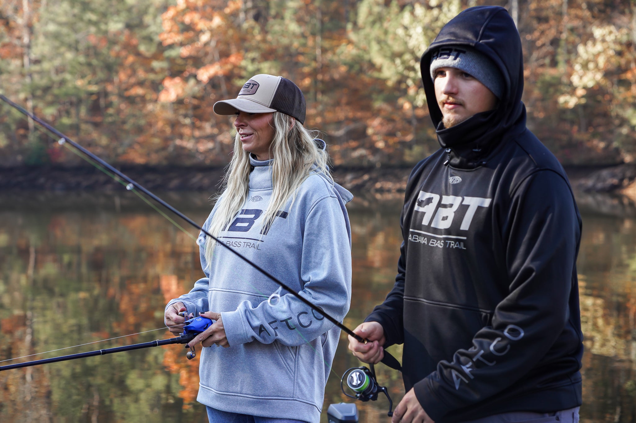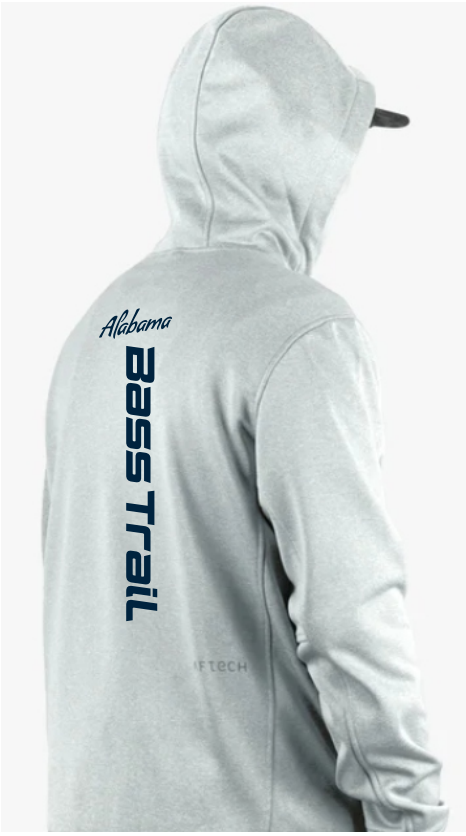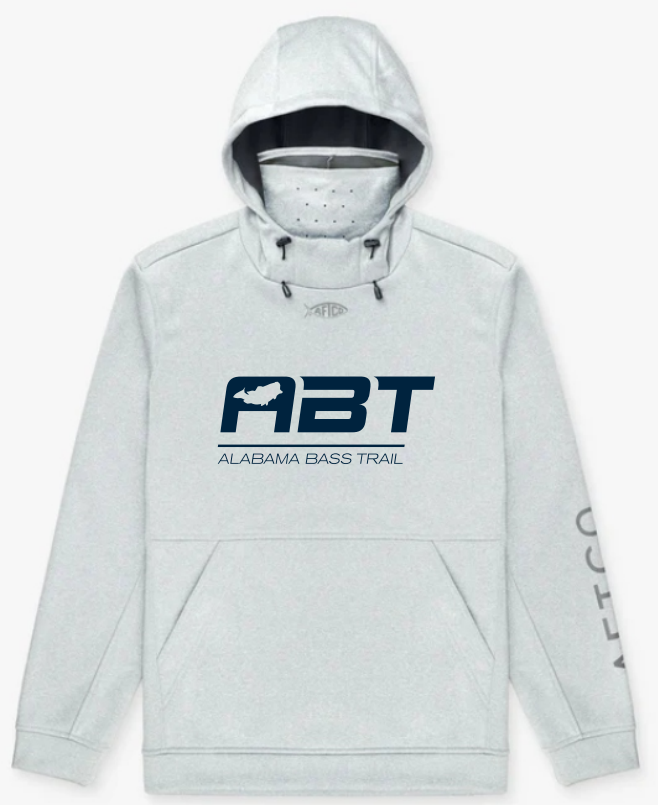 Light Gray Long Sleeve Hoodie AFTCO Reaper with ABT logo front and back (standard sizes run small)