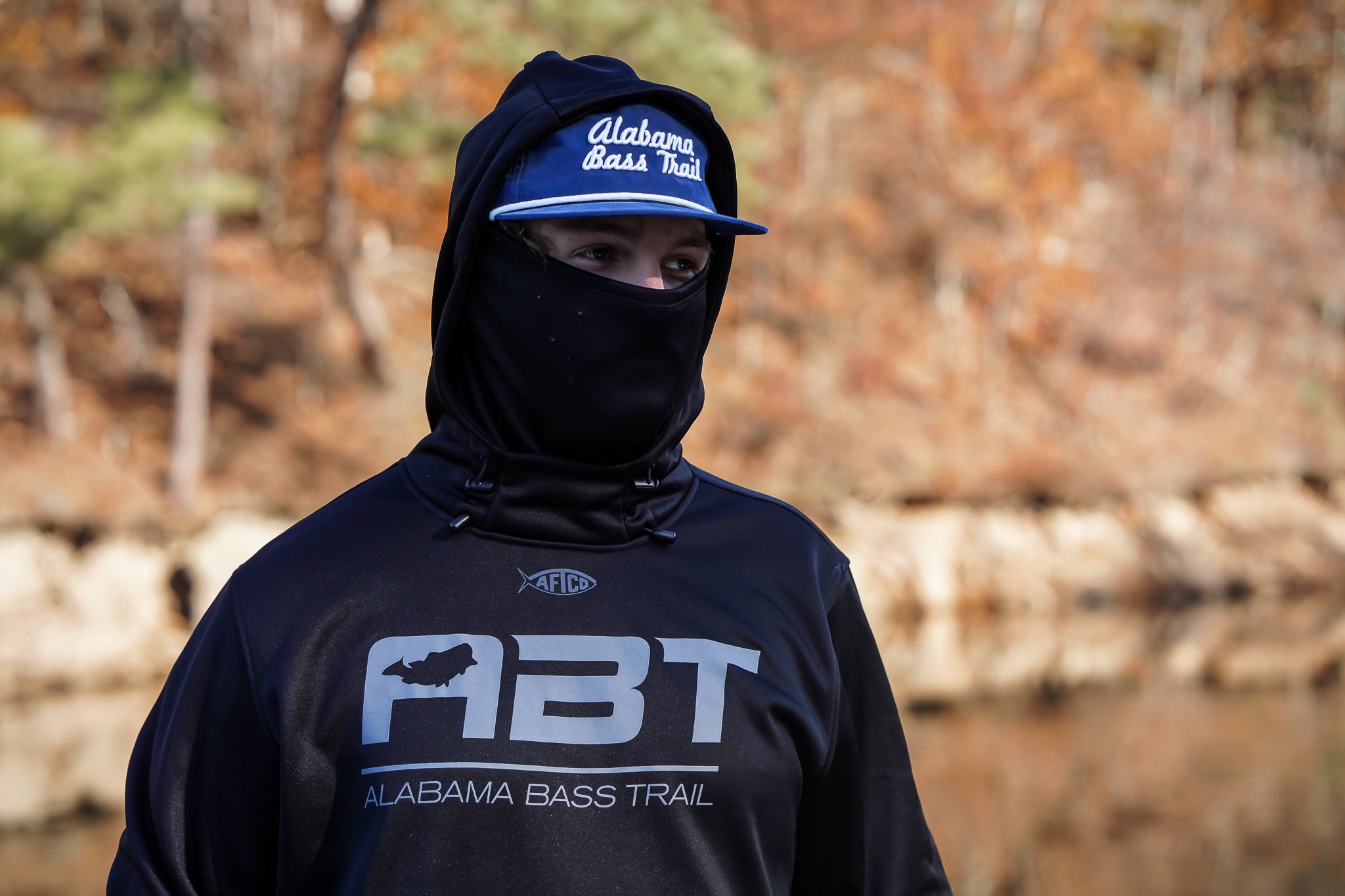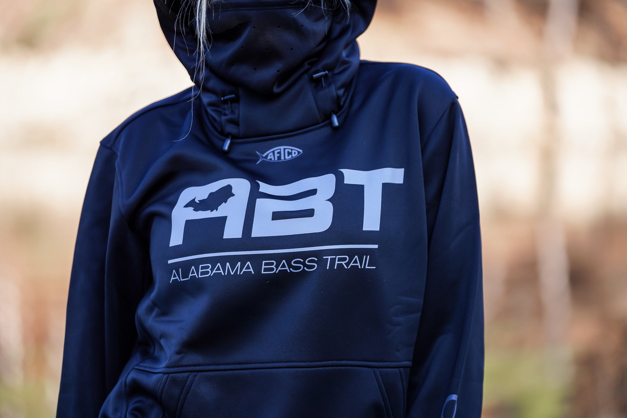 Navy Long Sleeve Hoodie AFTCO Reaper with ABT logo front and back (standard sizes run small)